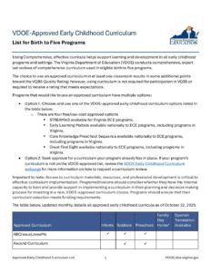 Virginia’s Early Learning and Development Standards (ELDS), Birth-Five Learning Guidelines