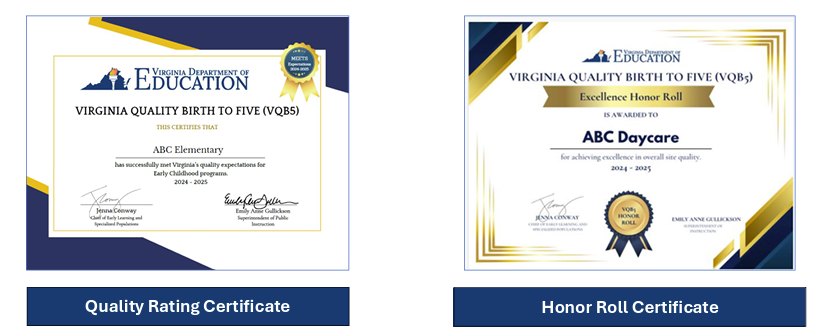 Virginia’s early childhood programs demonstrated both excellence and improvement in 2024-2025. This year, Virginia launched three VQB5 Honor Rolls to recognize 494 early childhood sites: